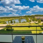 - un grand balcon avec vue sur le lac équipé d’une table et de deux chaises